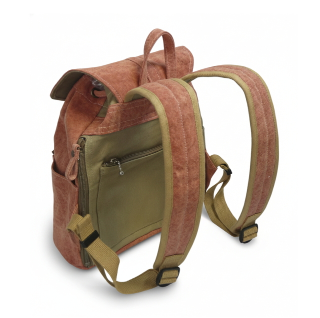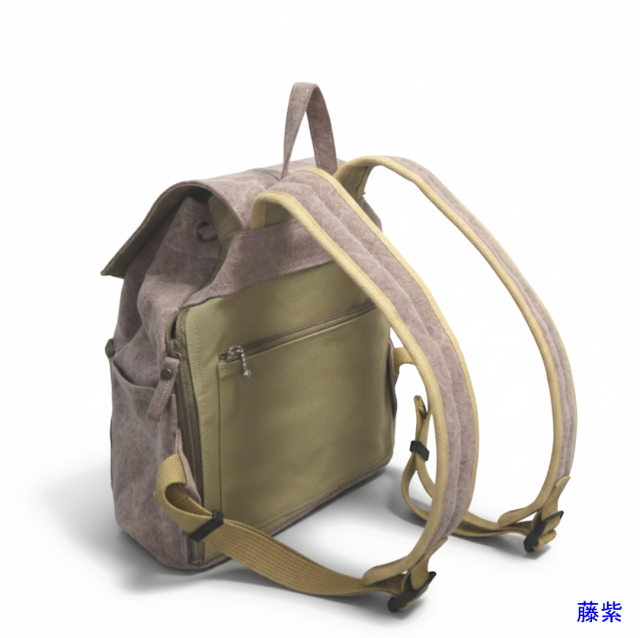 ・肩ベルトの裏側と背面は、9号帆布撥水加工生地を使用